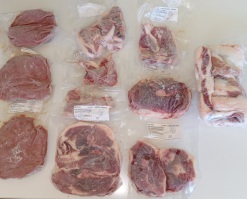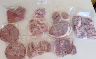 3 ground country sausage, 4 pork chops, 3 ham or shoulder steaks, roast/pork side